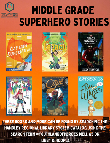 Our Middle Grade book spotlight this week is focused on books that are linked together by being superhero inspired! We have a great selection of fiction and graphic novel titles which include superhero characters and themes; some are one that you may know from the Marvel or DC Universes while others are completely original to that author and story. Hopefully these will help inspire you to explore if you have superpowers and how would you use them if you could. These books and more can be found by searching the catalog using the search tag #youthlandofheroes as well as on Libby and Hoopla. Check back next week for a new Middle Grade book spotlight and if you have any book suggestions, please let us know!!