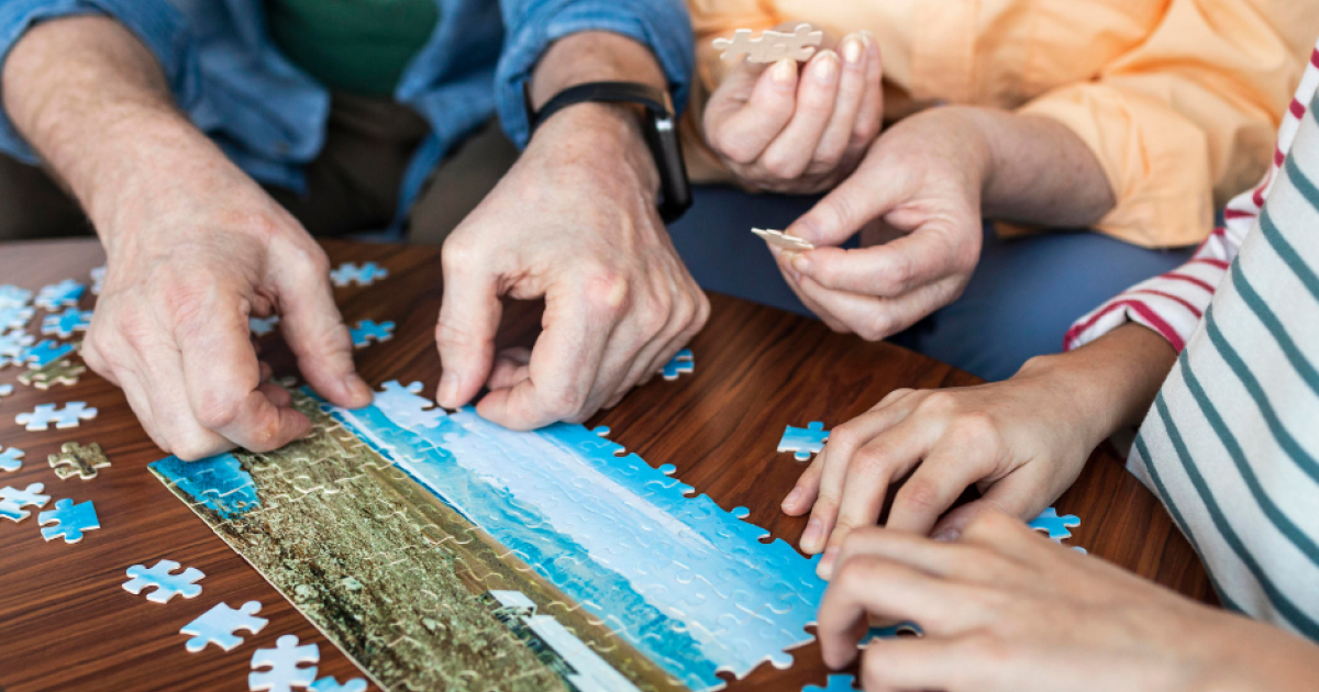 Teams of 2-4 people compete to finish the same 750 piece puzzle in the least amount of time. The winner gets a medal and all the bragging rights of being the first team to complete the puzzle.
