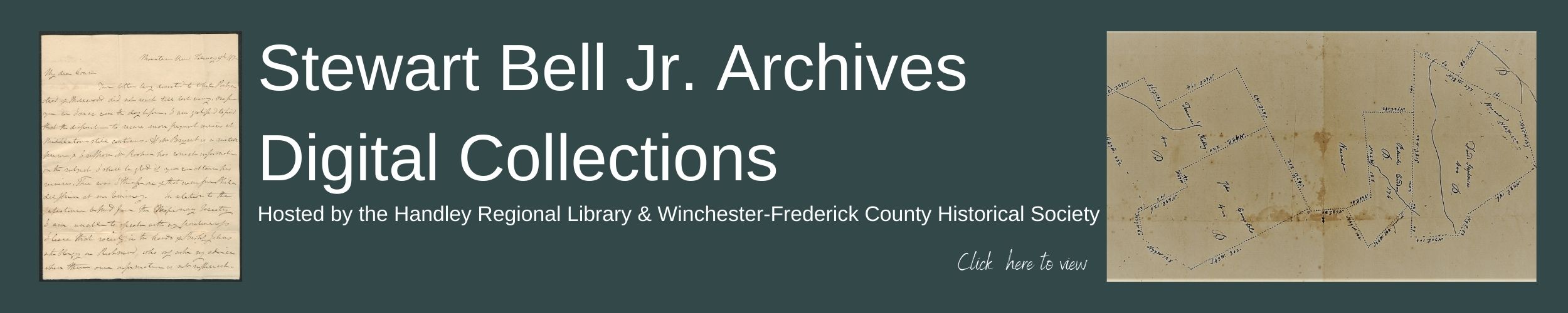The Stewart Bell Jr. Archives is a local history and genealogy center jointly operated by the Handley Regional Library and the Winchester-Frederick County Historical Society. Our holdings include a variety of materials documenting the history of the Lower Shenandoah Valley from 1732 to the present, with an emphasis on the City of Winchester and Frederick County, Virginia.