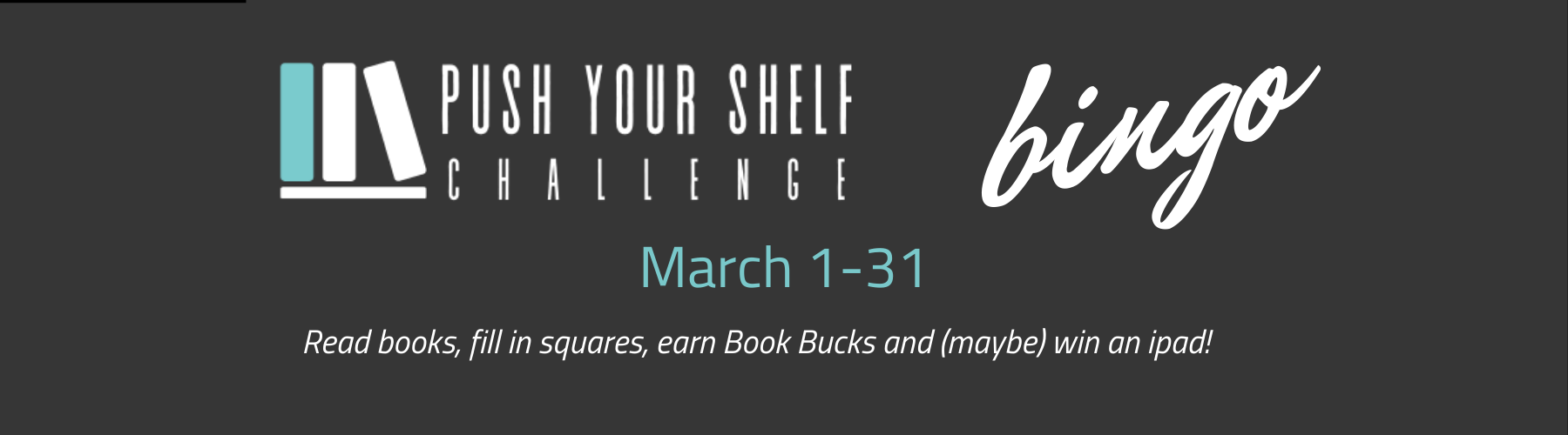 The Push Your Shelf Bingo Challenge is a fun way for patrons to explore new and different books to read, such as a new genre or new author, books from other countries, or an entirely new library collection like magazines and documentaries. Plus, completing a challenge earns Book Bucks and a chance to win a mini iPad!
