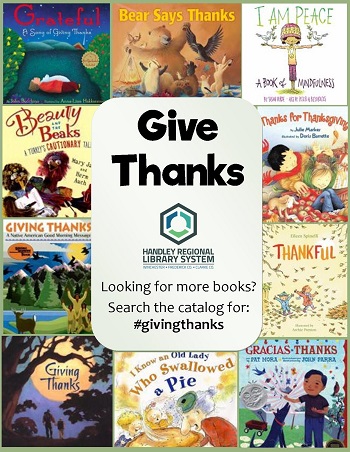At Handley Regional Library System, we want to say “Thank you!” to all of our wonderful patrons of all sizes. You give us reason to give thanks every day. In that spirit of gratitude, we will share some of our favorite books about gratitude and thankfulness this week.