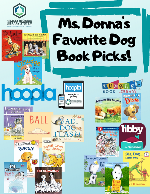 Finally, Libby by Overdrive has several favorite dog books, including How Rocket Learned to Read and Rocket Writes a Story by Tad Hills, Big Dog... Little Dog by P.D. Eastman, and Too Many Dogs by Lori Haskins Houran.