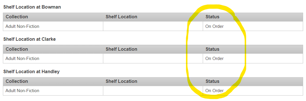We've started showing books and more in our catalog immediately after they've been ordered! You can tell what's on its way to our shelves by the "on order" status.
