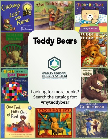 You can find many wonderful books about teddy bears at all three branches of the Handley Regional Library System. Type in the tag: #myteddybear into the search bar for a list. You can also search our CD and DVD collections for many teddy bear inspired songs and movies to take home.