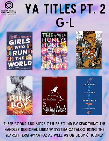 Our teen book spotlight this week is the second part of a series we started in our last spotlight! Over the next few weeks, we will be working our way through the alphabet as we use letters for inspiration as each title starts with the next letter in order. This week we are moving on to the second part of the alphabet with books that start with a G through L giving us six amazing books to explore; we have everything from nonfiction to graphic novels, some of our new titles, and some page turning mystery adventures. Next week, we will pick up with the letter M. These books and more can be found by searching the catalog using the search tag #yaatoz as well as on Libby and Hoopla. Check back next week for a new teen book spotlight and if you have any book suggestions, please let us know!!