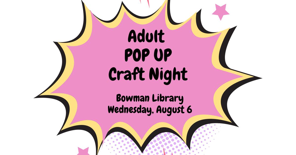 Swing by the Reading Porch for another Adult Craft Pop up!