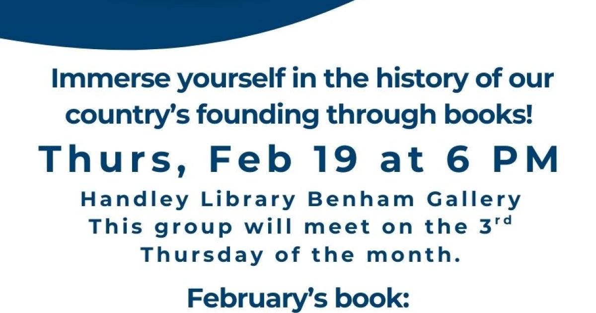 The America 250 Book Circle brings readers together to immerse themselves in the history of our country’s founding. Through shared reading and lively conversations, we explore books that illuminate the challenges, triumphs, and vision of the early American experience. The Book Circle will also meet on the 3rd Thursday of the month in March and April.