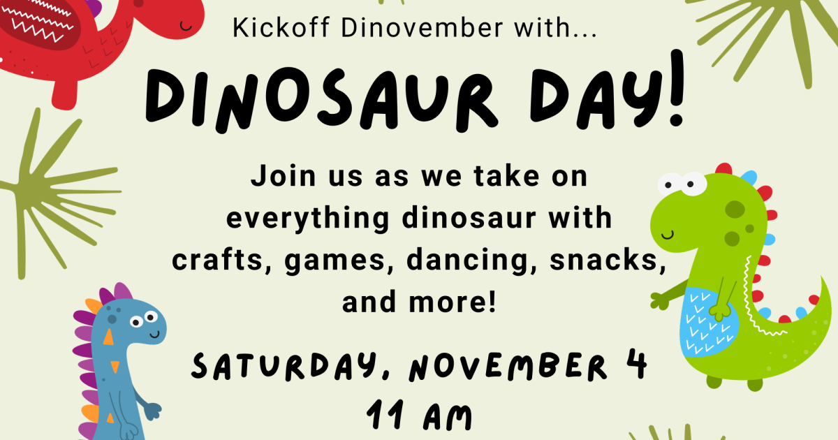 Help us kick off Dinovember with crafts, games, activities, stories, and snacks all about dinosaurs!