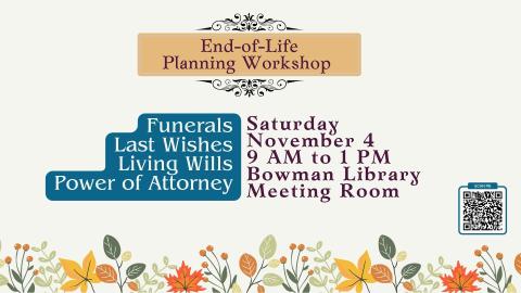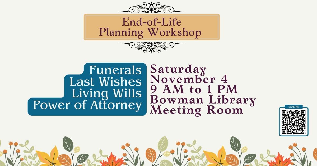 Helen Zebarth, who was a founder of Hospice in this area, will join other professionals in sharing advice for all ages. Topics include navigating end-of-life plans, from living wills to planning funerals to powers of attorney, and more.