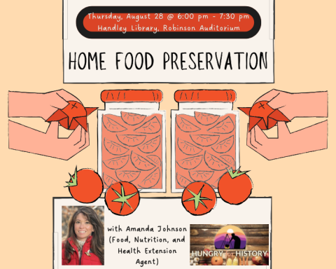 As we celebrate Hungry for History in Winchester and Frederick County, please join us to learn to safely preserve food at home with Amanda Johnson.