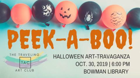 Join The Traveling Art Club on October 30, 2019 for a spooktacular Halloween Art-Travaganza. Play Candy Corn-Hole, enter the costume contest, make spooky trees & much more!