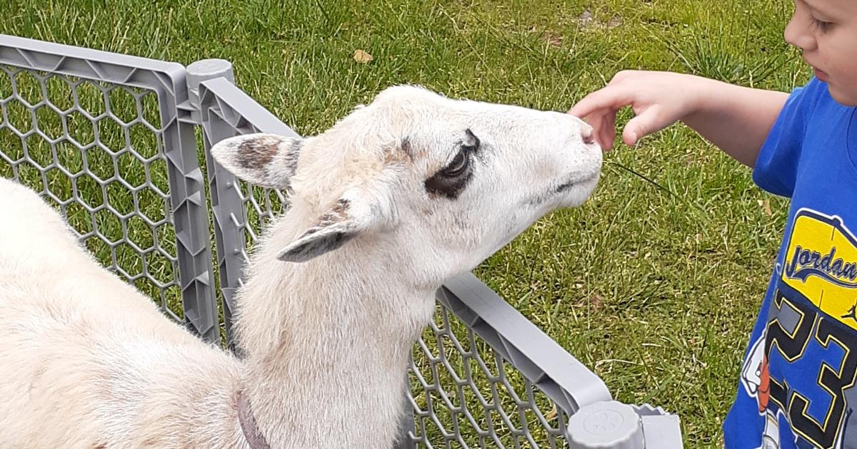 The Petting Zoo animals are various farm animals and rescue animals that will be around for you to pet. You may see a bunny, a goat, a duck, a pot-bellied pig, a sheep, a miniature cow or horse.