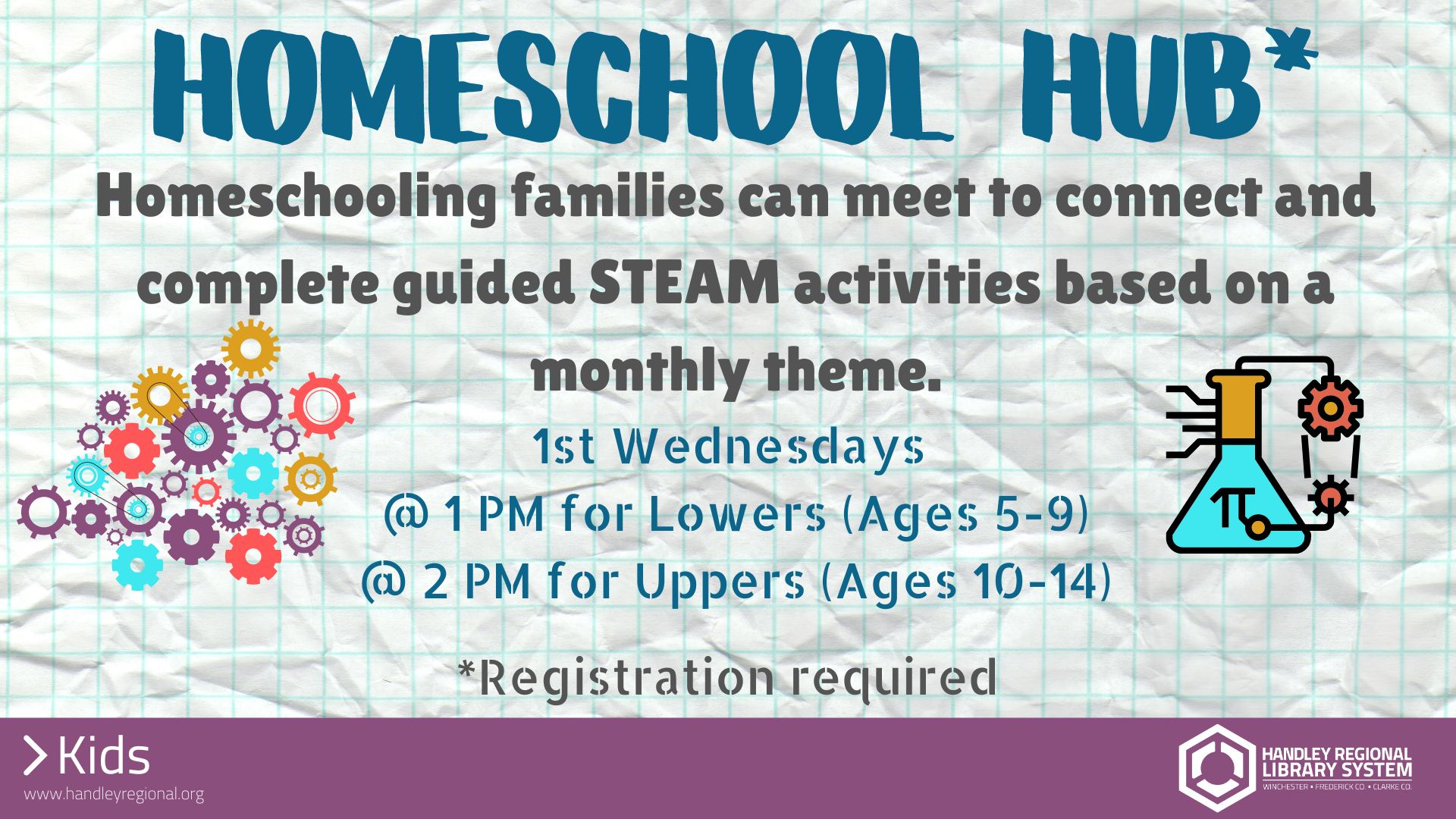 Homeschooling families in the 10-14 age group can meet and socialize in this group through guided STEAM activities that focuses on a monthly theme with special career guests throughout the season. *Registration required.