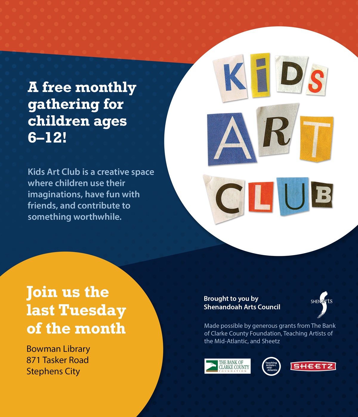 Visit shenarts.org/kids-art-club for more information.