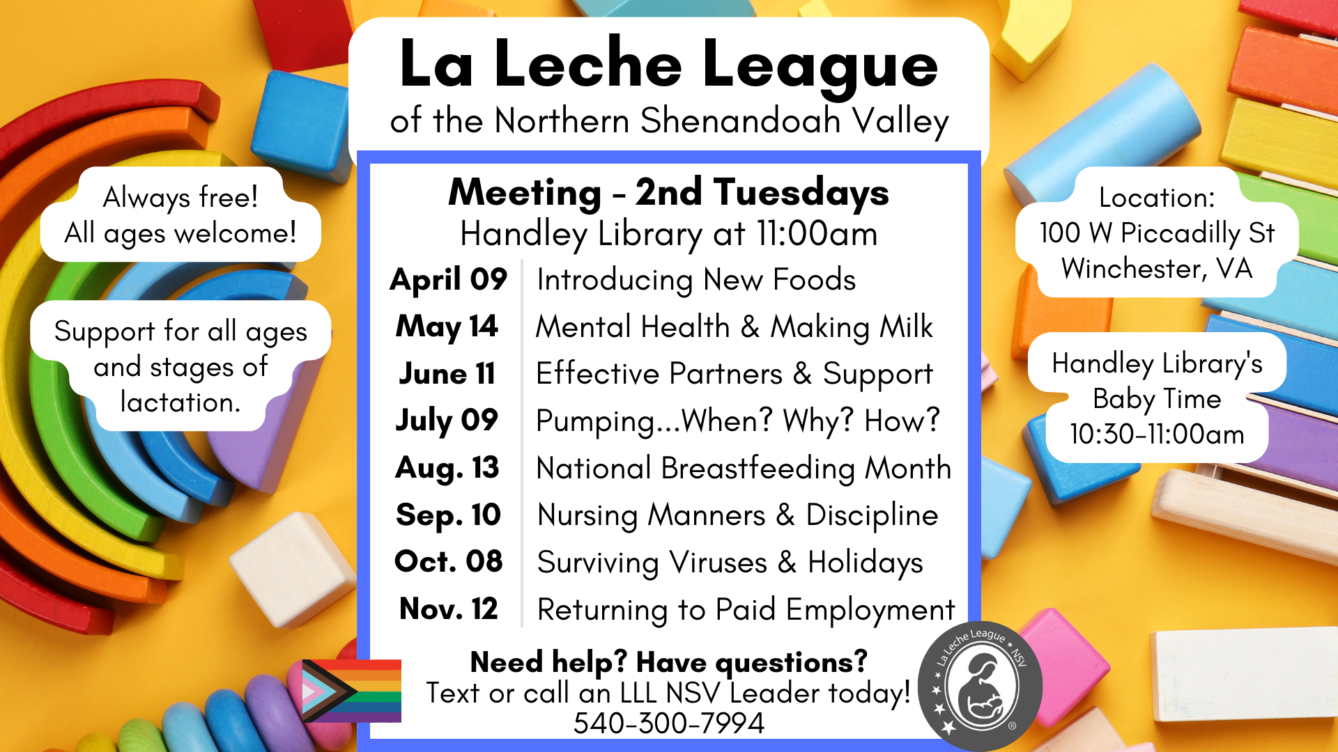 These leaders are parent volunteers, educated and accredited by La Leche League International to provide FREE, inclusive, evidence based, community lactation and parenting support. LLL NSV serves families in Virginia, Maryland, and West Virginia.