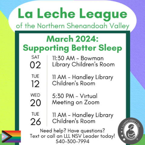 Join La Leche League in the Bowman Children's Room for a pro-breastfeeding hangout with other parents! This month's discussion theme is: "Supporting Better Sleep"