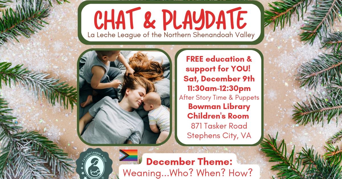 Join La Leche League in the Bowman Children's Room for a pro-breastfeeding hangout with other parents! This month's discussion theme is: "Weaning...Who? When? How?"