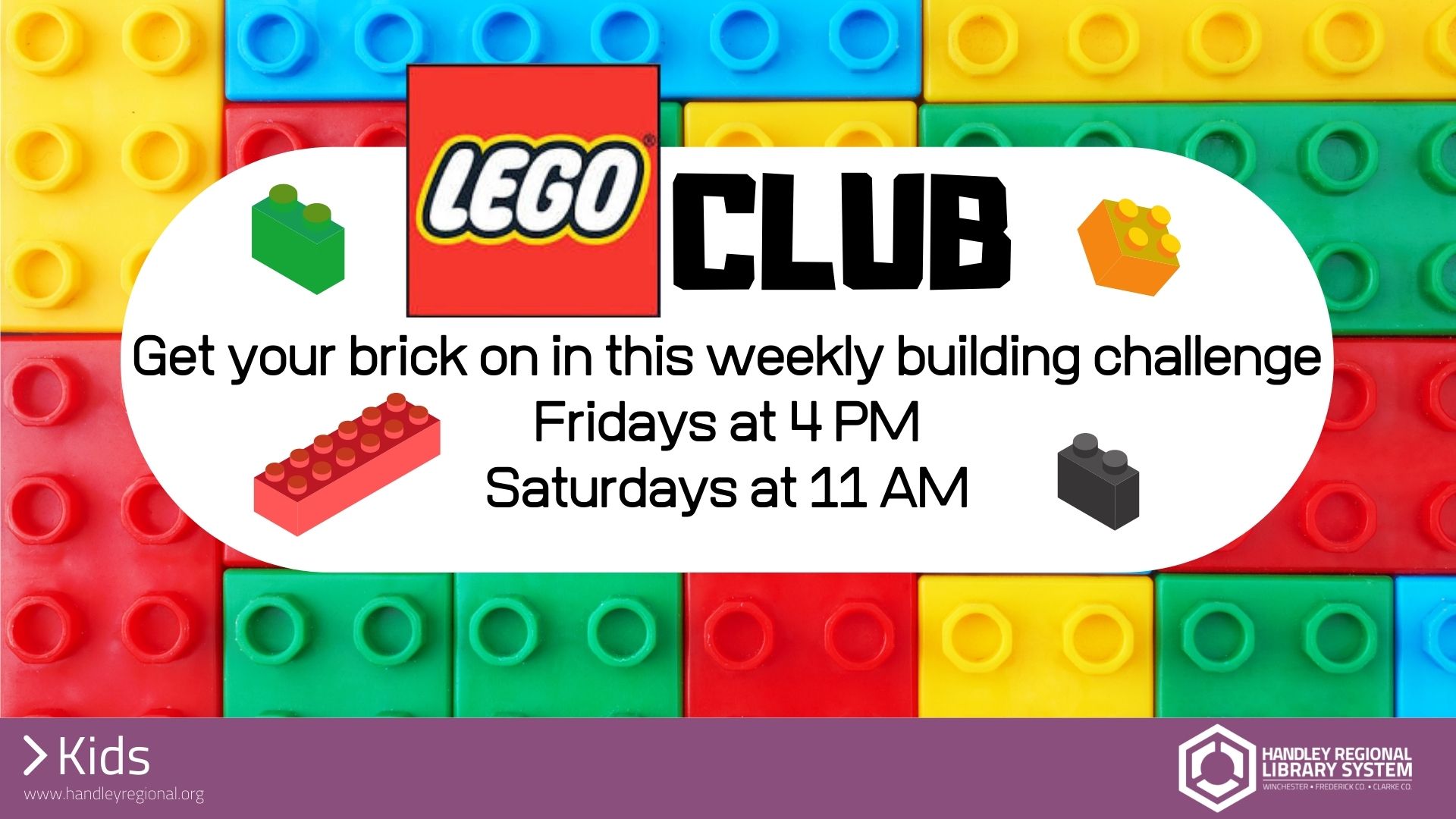 Get your brick on in this weekly building challenge. Program is intended for Ages 6+.