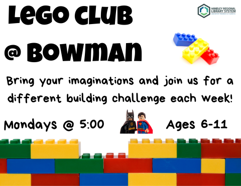 For this week--it is EXTENDED BUILD! Bring your imaginations and join us every week for a different building challenge!! All kids ages 6-11 are invited to come out; no registration is needed. Our theme this week is...Made-Up Places!