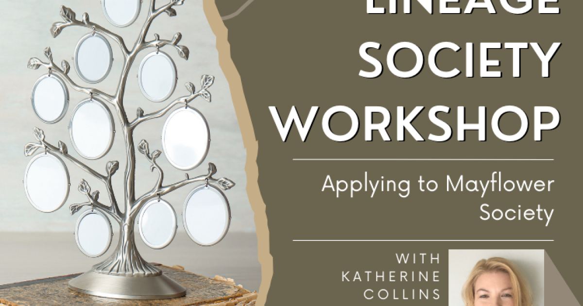 Have you ever wanted to apply to a lineage society? Do you have an application but aren't sure if you have all the proofs you need? Katherine Collins, MLISc, can help you with your questions, review applications, and assist with genealogical research issues. Each month, Katherine will lead a focused discussion on how to apply to specific lineage societies. This month her focus will be: Mayflower Society.
