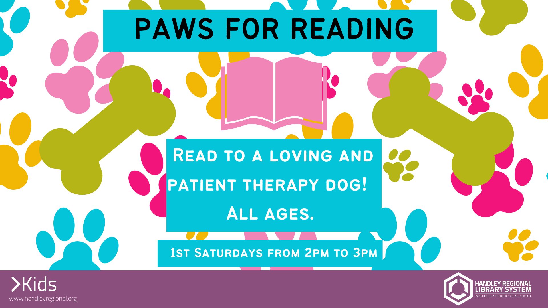 Beginning readers can read a book to a loving and patient therapy service dog! All Ages.