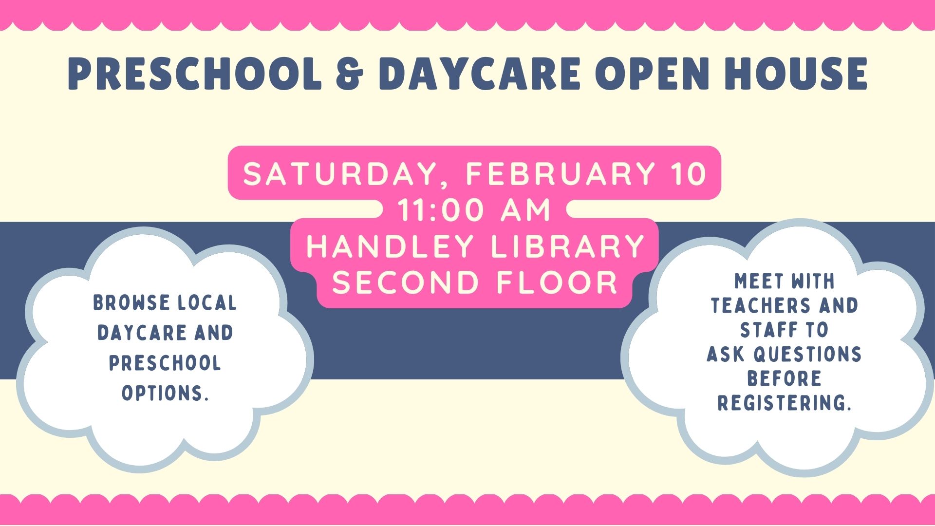 Browse local daycare and preschool options for your family. Meet teachers and try out activities in this open-house style event. Program is intended for families of young children.