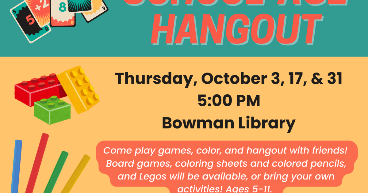 Board games, coloring sheets and colored pencils, and Legos will be available, or bring your own activities!