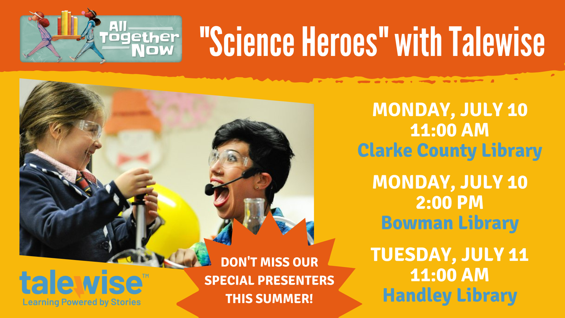 Throughout the adventure, volunteers will help the performer conduct several exciting science experiments that bring this story to life! Together we’ll explore Newton’s Laws of Motion, air pressure, chemical reactions, and more!