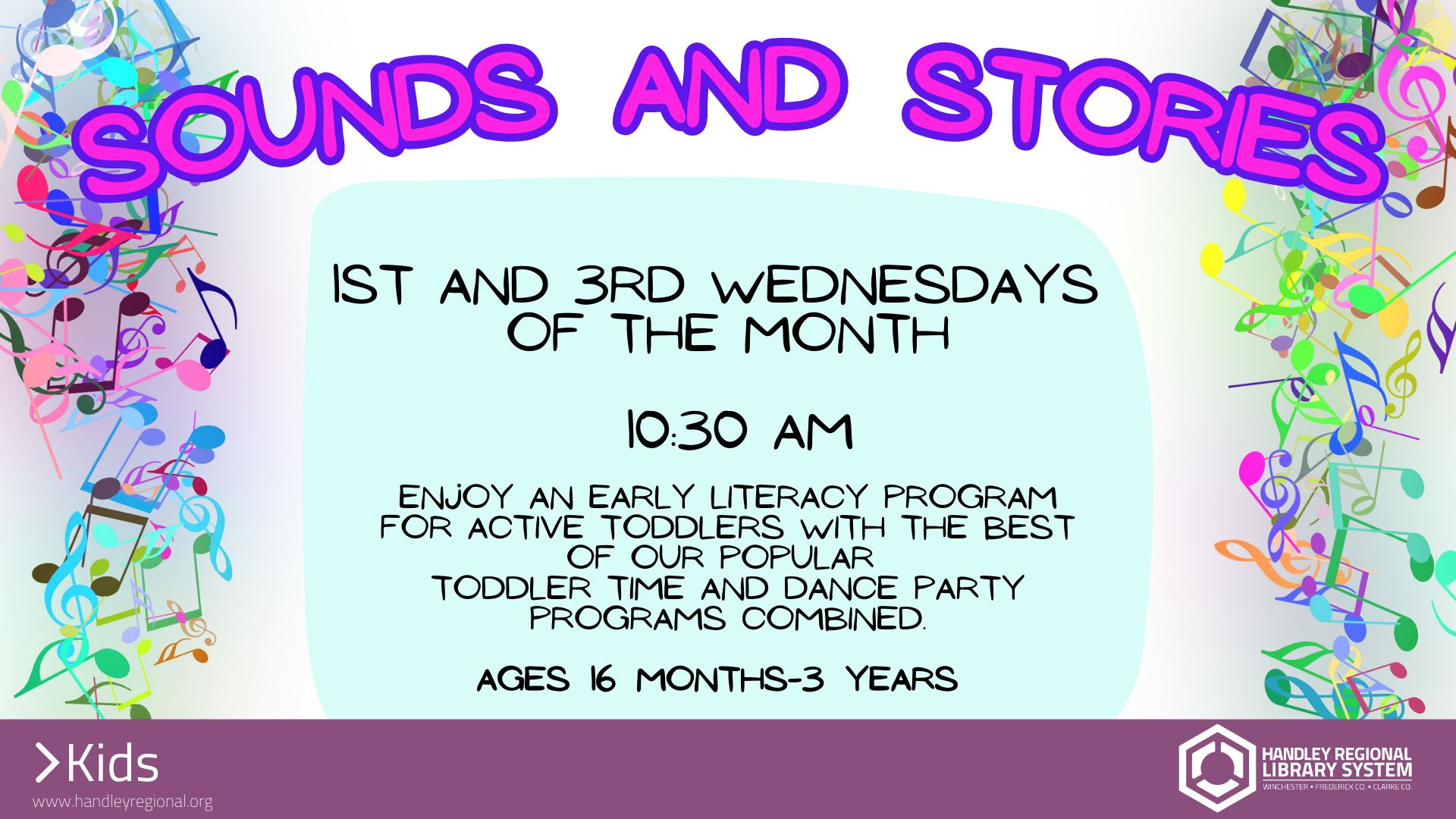 Enjoy an early literacy program for active toddlers with the best of our popular Toddler Time and Dance Party programs combined. Focused on developmental skills consisting of stories, rhymes, fingerplays, and more. Program is intended for Ages 16 months-3 years and their caregivers.