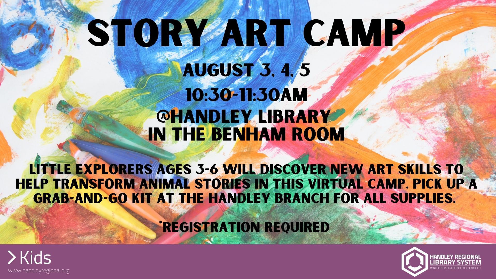 Explore new art skills to help transform animal stories in this in-person camp. Participants will receive a Grab-and-Go Kit at the Handley branch for all supplies during the program. *Registration required. Ages 3-6.