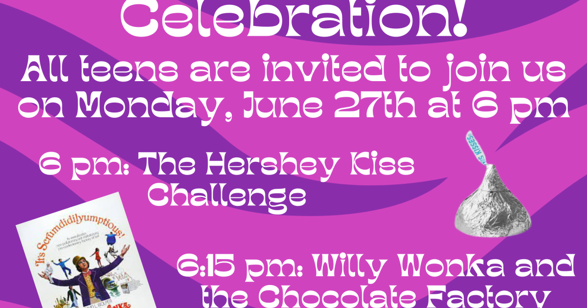 Join for an evening of candy and laughter as we watch Willy Wonka and the Chocolate Factory all while having our own chocolate showdown with a Hershey Kiss Tasting Challenge to see who has the best chocolate palate in the group.