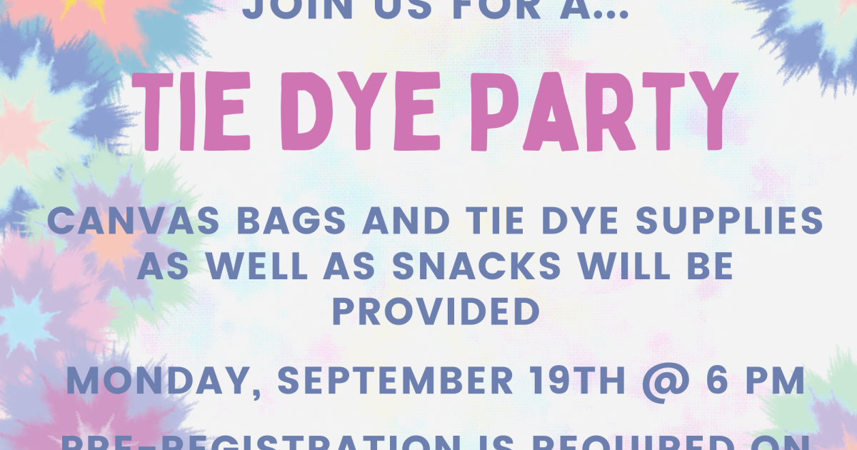 Join us as we tie-dye tote bags and hangout--supplies and snacks will be provided!