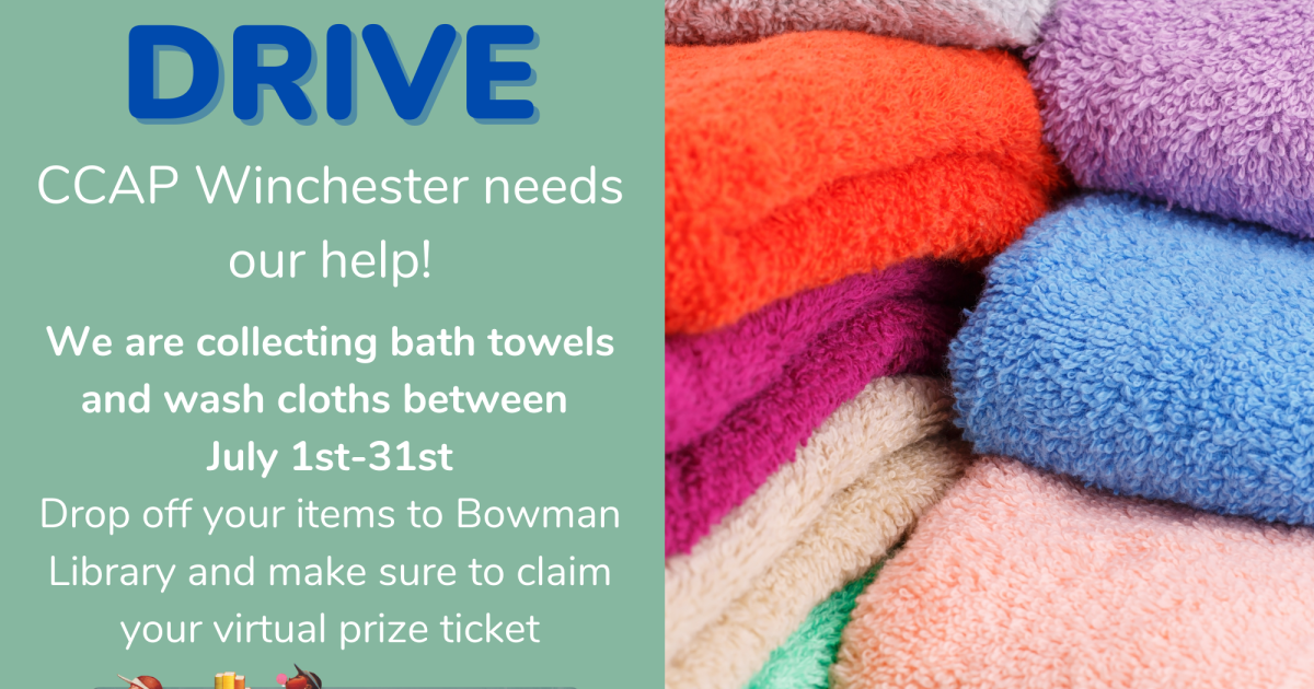 Join us as we collect new bath towel and wash cloths for CCAP Winchester throughout the month of July.
