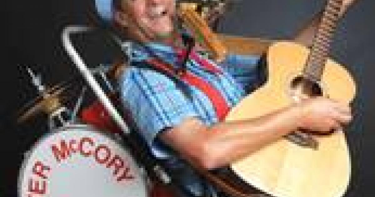 While strumming guitar, Peter's also playing harmonicas, kazoos and whistles. Then, with his feet he plays drums, cymbals, cow bell and other percussion instruments. And, on top of his own self-contained back-up band, he sings, whistles, yodels and scats. And he does all this at the same time, without any help from any electronic or computer-controlled instruments!